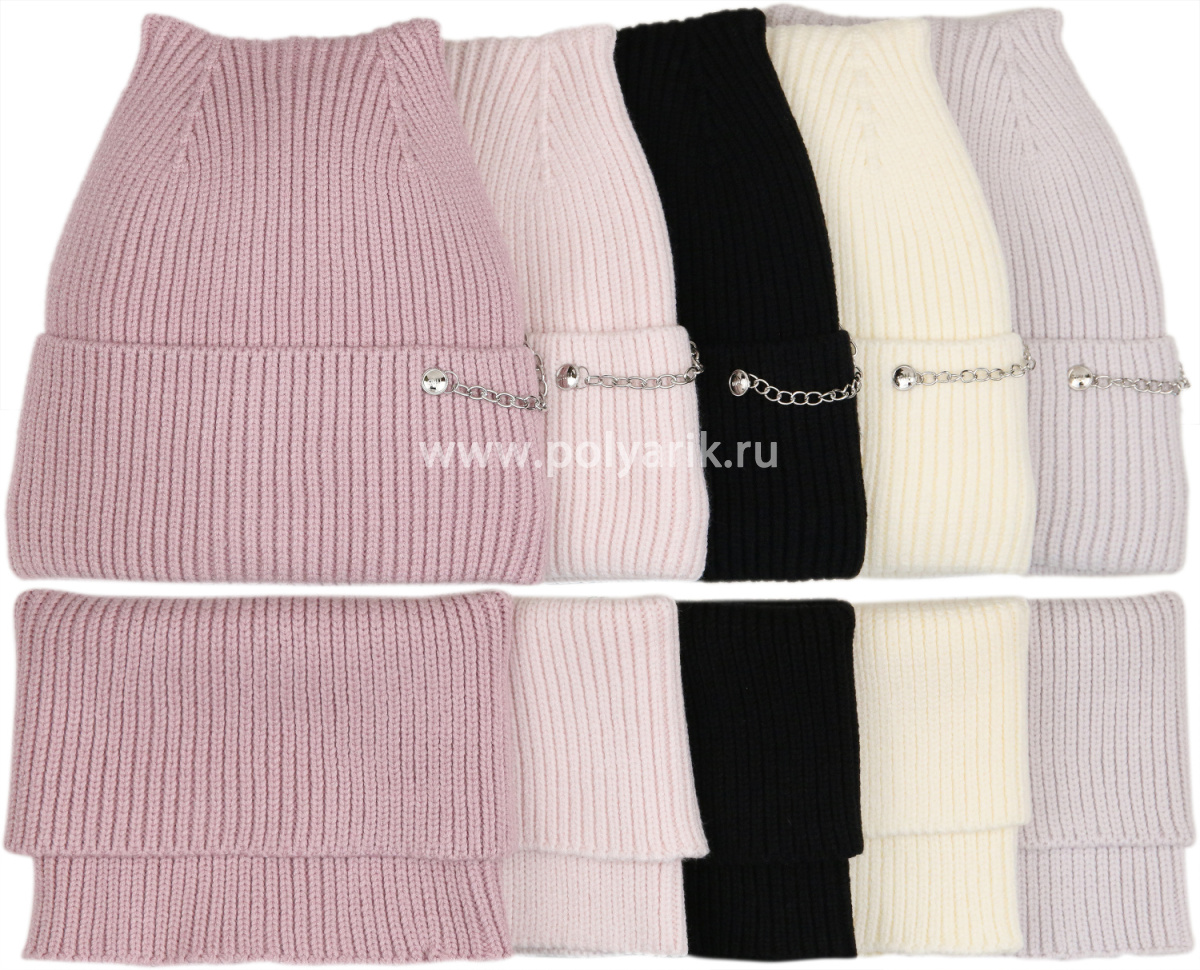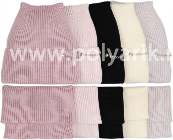 Набор вязаный шапка+снуд, подклад флис
