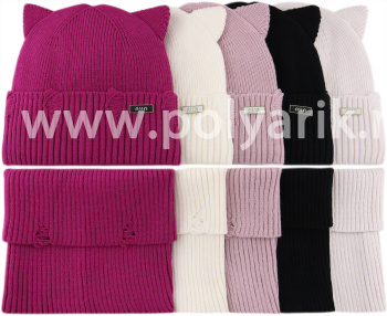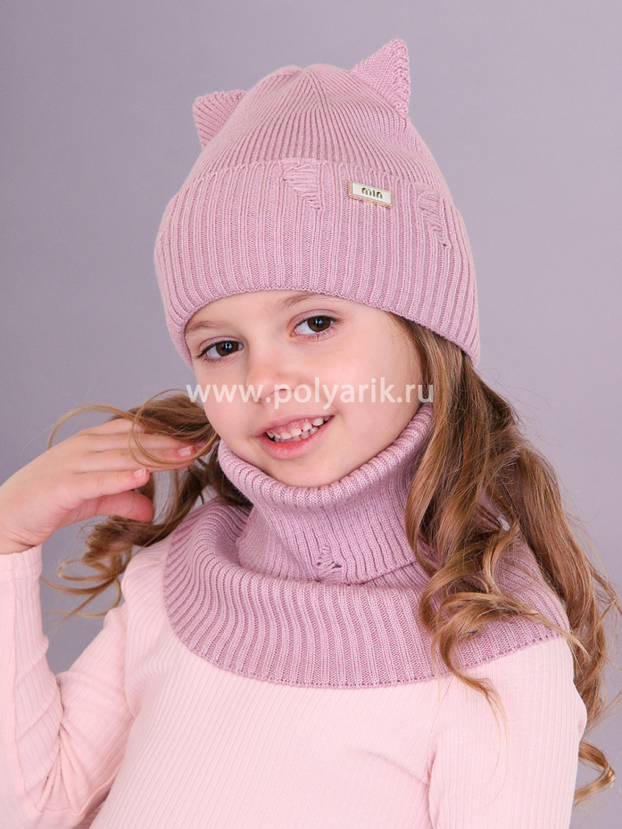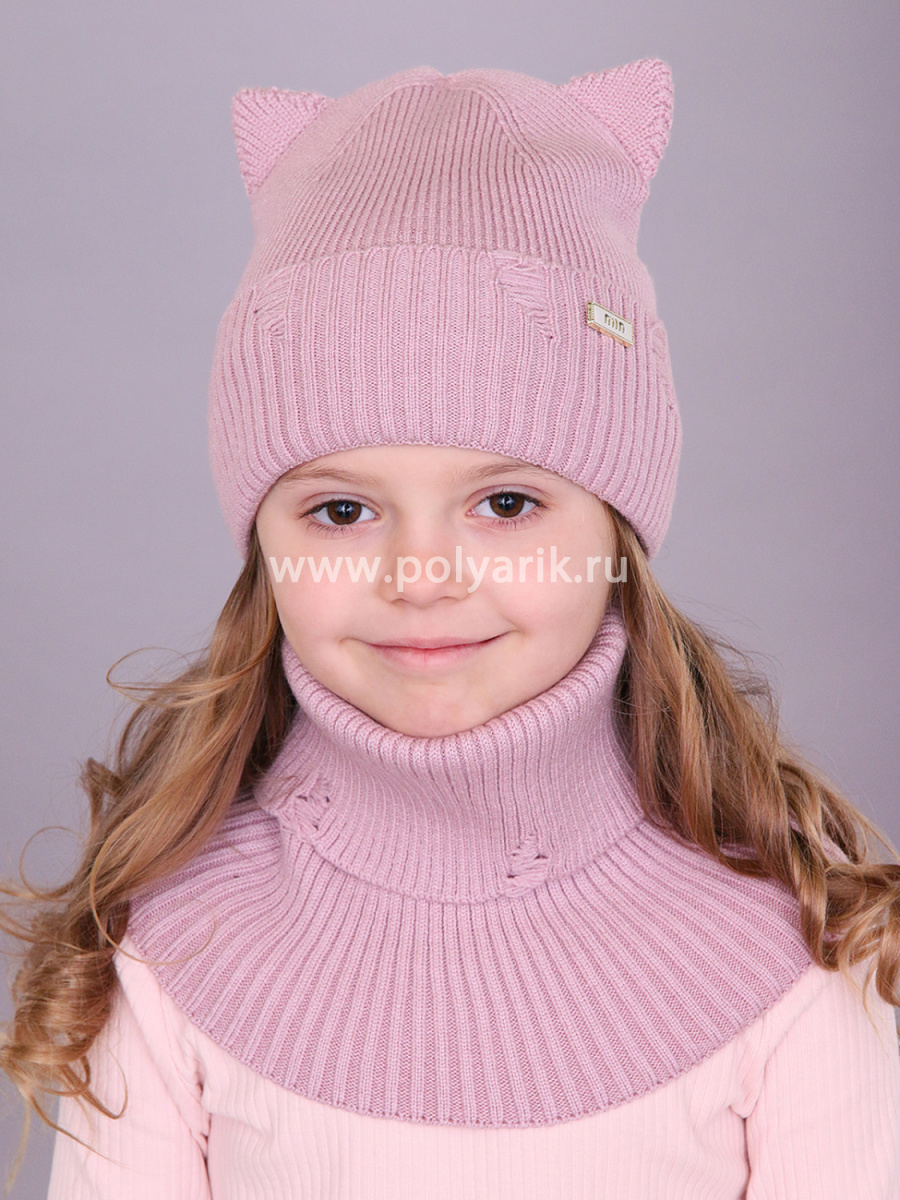 стильный и уютный комплект для юных модниц — шапочка с ушками и снуд, выполненные в гармоничном дуэте для весеннего сезона.