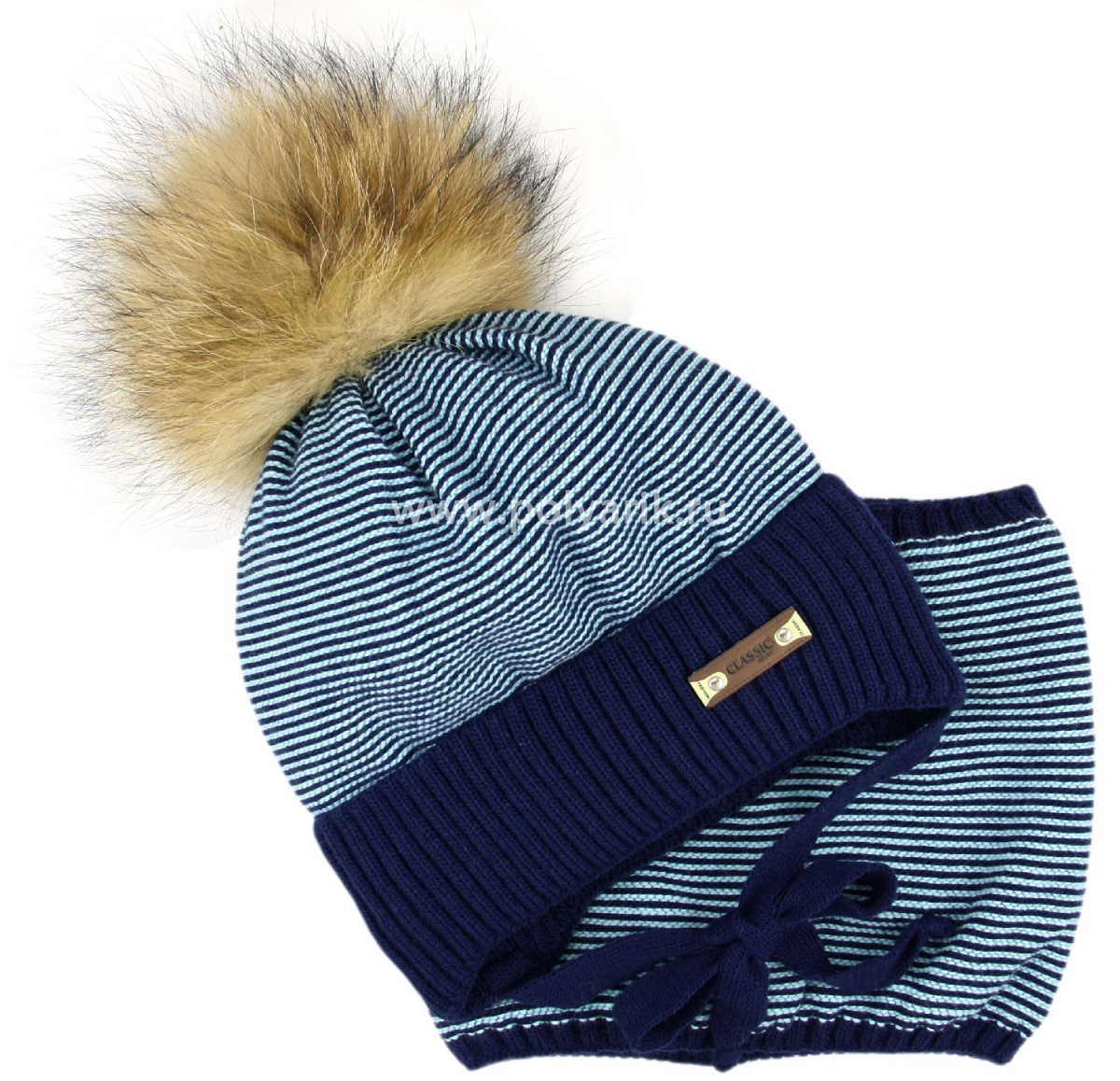Великолепный комплект, шапка с х/б подкладом, утепленная синтепон + шарф-хомут с флисовым подкладом. Мягкий, теплый, хорошо тянется, натуральный енотовый помпон