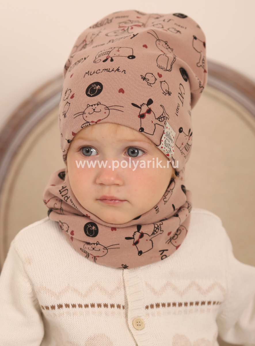великолепный комплект, нежнейший эластичный трикотаж, эксклюзивный принт, пастельные цвета, модная форма "бини"
