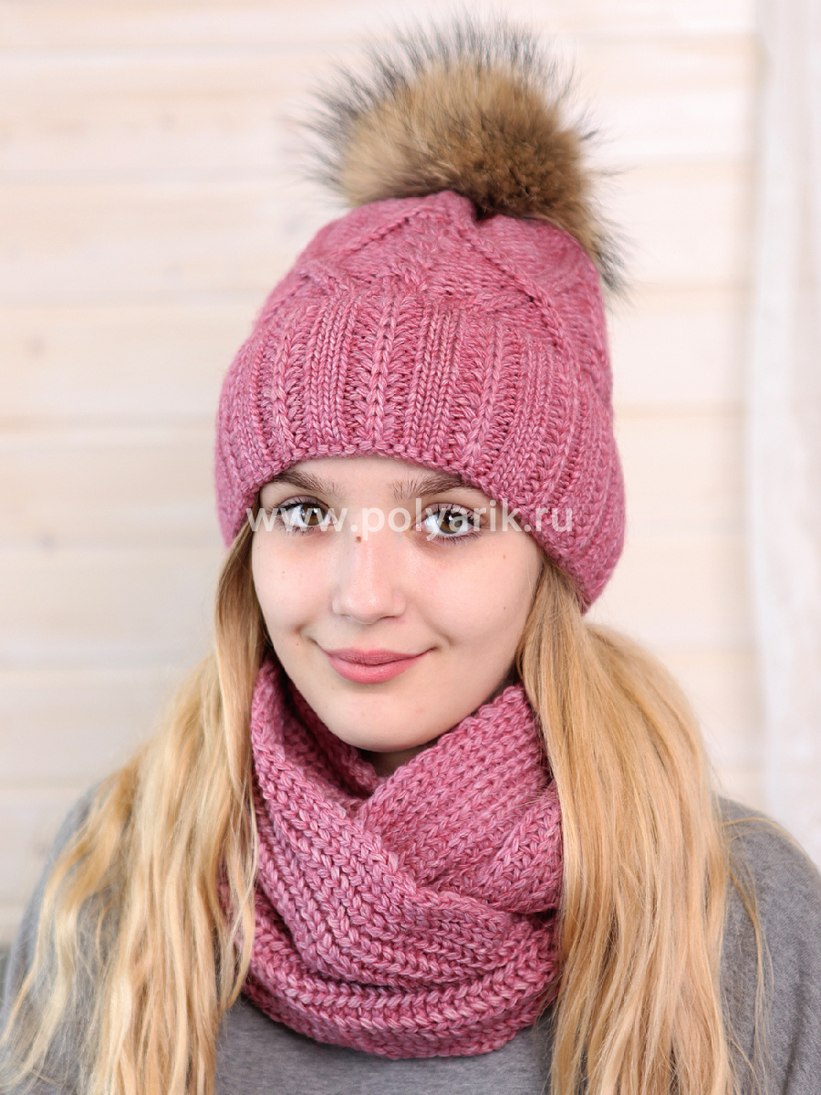 Великолепный комплект, шапка с флисовым подкладом + шарф-восьмерка. Мягкий, теплый, хорошо тянется. Натуральный енотовый помпон.