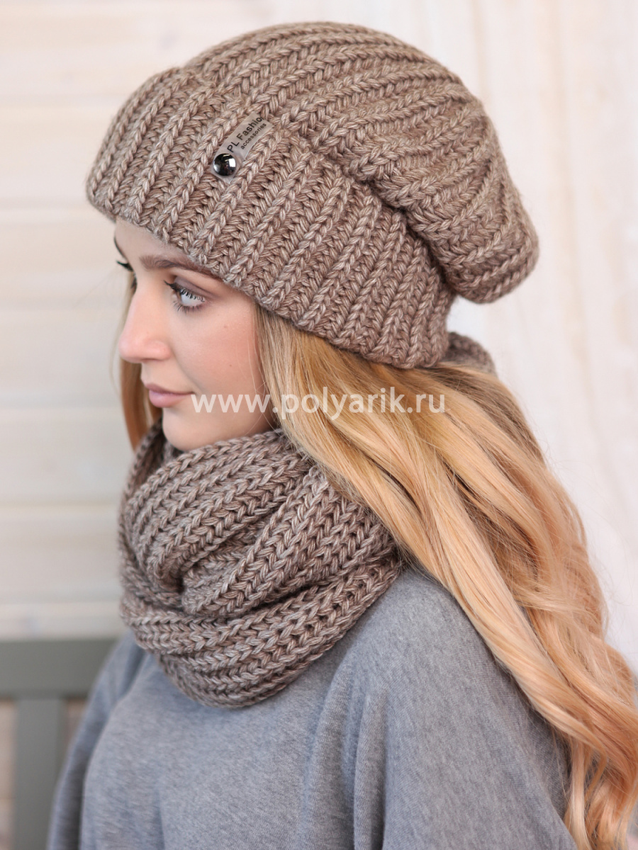 Комплект вязаный, подклад флис