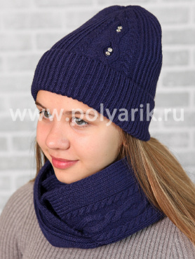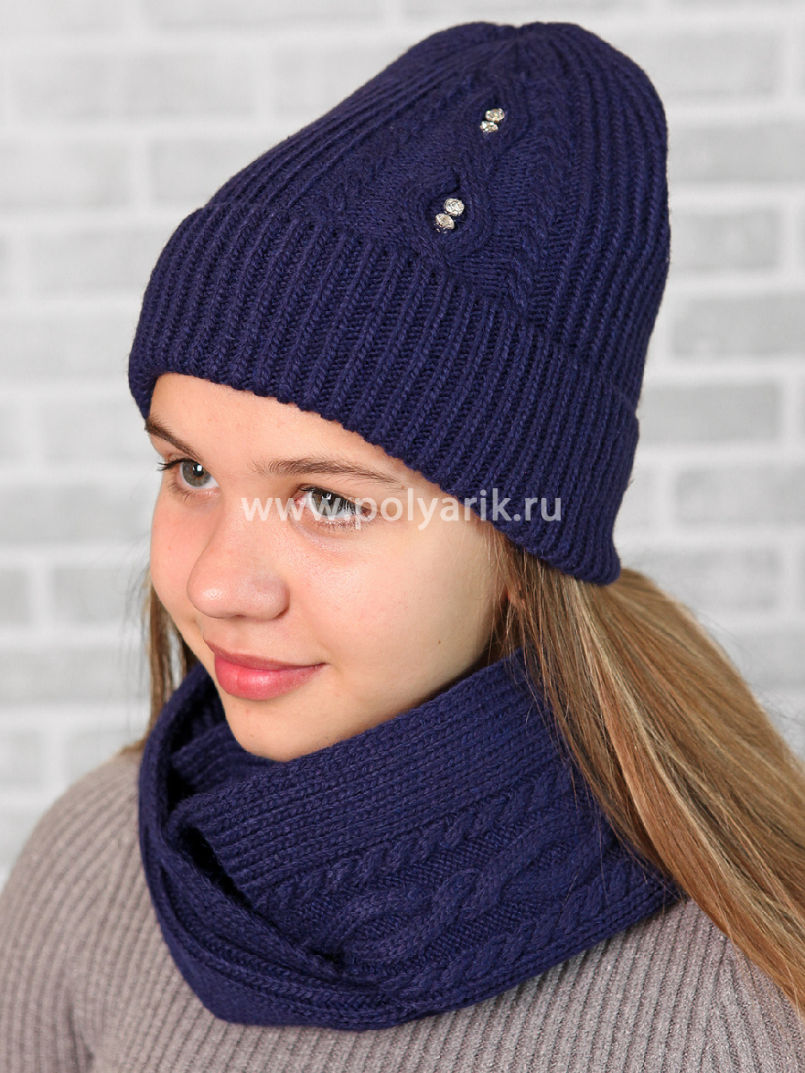 Теплый, добротный комплект, модная форма шапки "бини", снуд-восьмерка