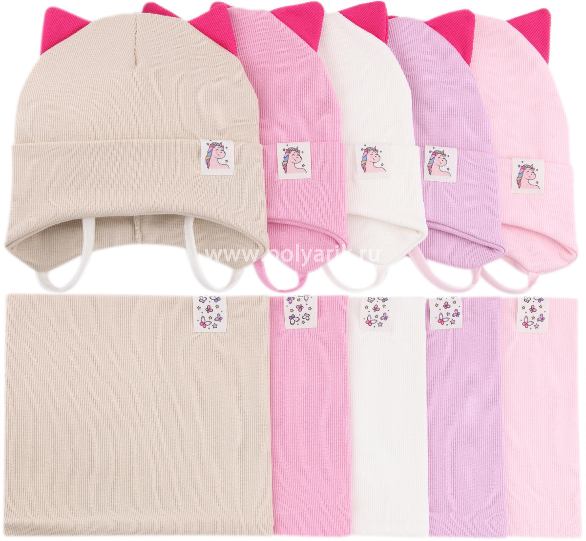 шапка и шарф украшены милыми нашивочка с изображением единорога и бабочек