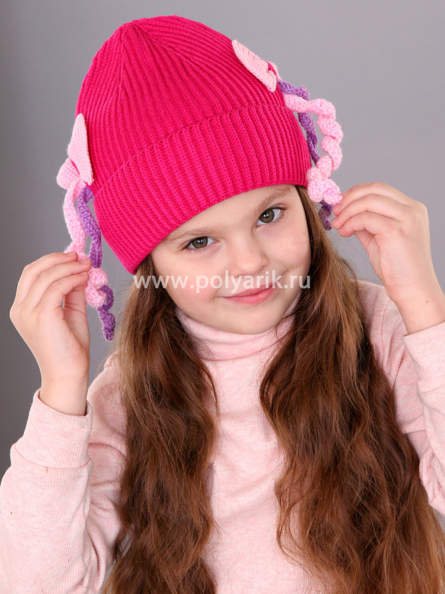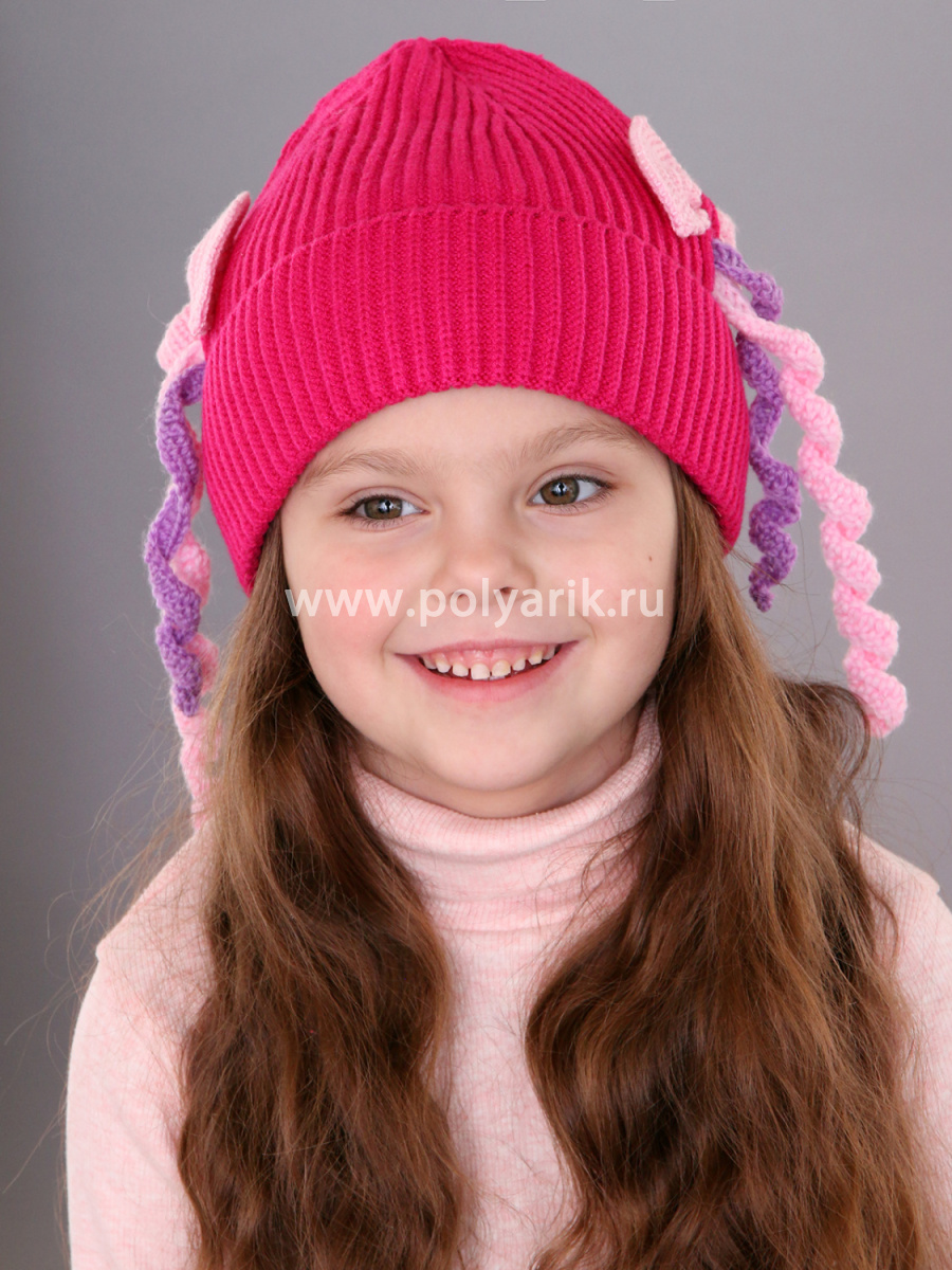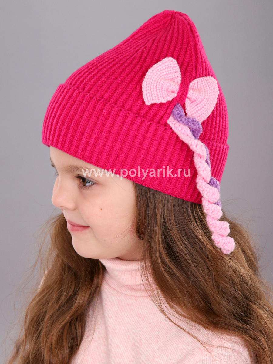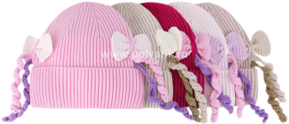 декоративный бантик, забавные косички, которые придают шапке игривость