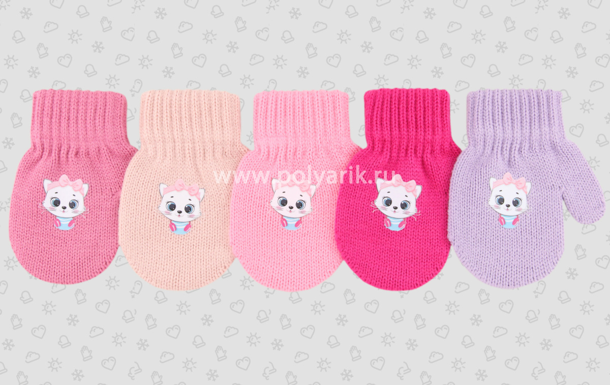 варежки украшены принтом в виде милой кошечки
